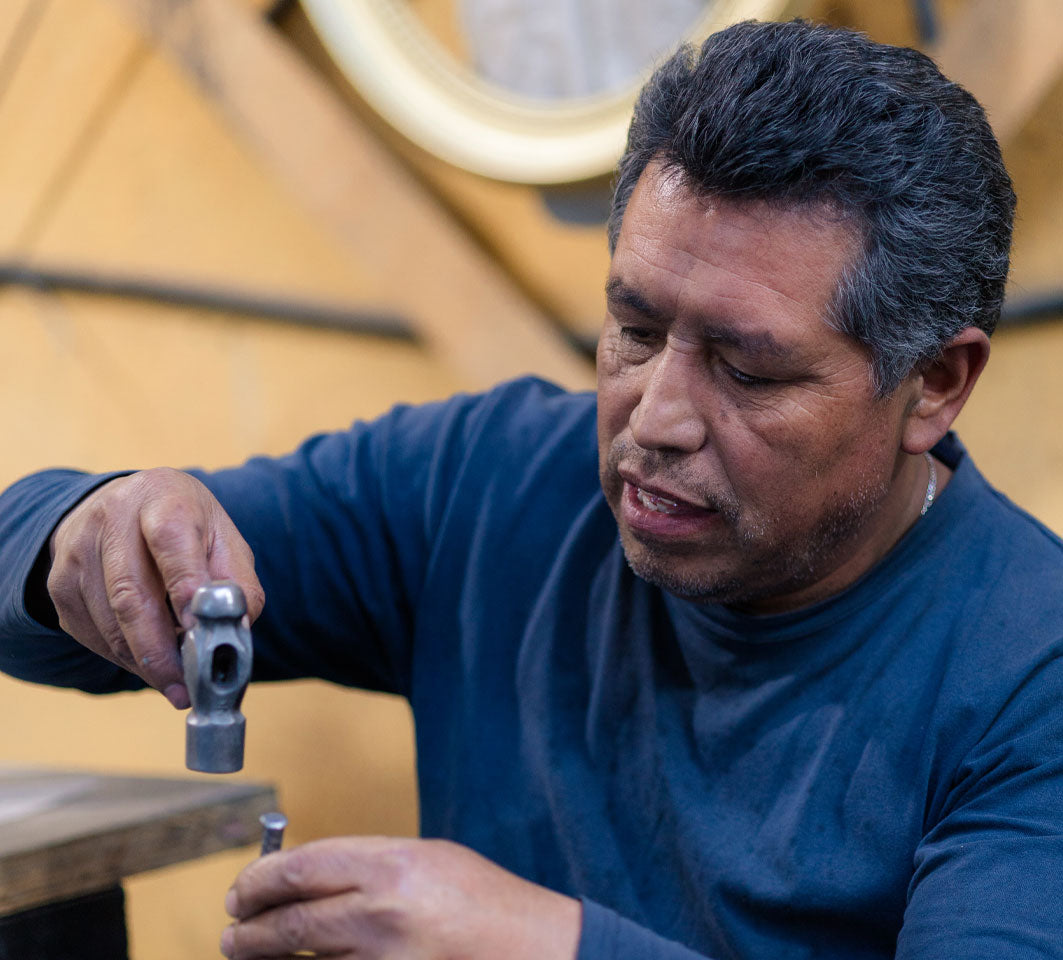 Expert in intricate ironwork, perfecting the hat-making process for over 20 years.